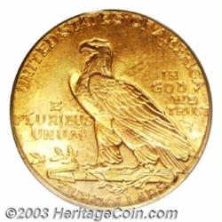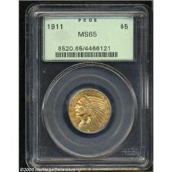<table><tr><td><TABLE cellSpacing=0 cellPadding=0 width="100%" bgColor=#000000 border=0><TBODY> <TR><TD width="100%"><TABLE cellSpacing=1 cellPadding=3 width="100%" border=0><TBODY><TR><TD width="100%" bgColor=#79735c><FONT face=arial color=#ffffff size=3><B>Description</B> </FONT></TD></TR><TR><TD width="100%" bgColor=#ffffff><FONT face=arial size=2><B>1911 $5 MS65 PCGS.</B></I> While the typical 1911 Half Eagle is not fully struck--a characteristic that this issue shares with the 1911 Quarter Eagle--the present example is free of bothersome incompleteness of detail. Even the lowermost feathers in the Indian's headdress are bold, and the eagle's shoulder feathers are crisp. The colorfully toned surfaces are fully lustrous and, as befits the issue, a little granular in texture. An abundant amount of reddish-orange patina graces each side. There are only a few abrasions, none of which are located in prime focal areas or are out of context with the assigned grade. A solid Gem quality representative of this conditionally challenging type. Population: 28 in 65, 1 finer (10/03). </FONT></TD></TR></TBODY></TABLE></TD></TR></TBODY></TABLE><BR><A name=PricesRealized></A><TABLE cellSpacing=0 cellPadding=0 width="100%" bgColor=#000000 border=0><TBODY><TR><TD width="100%"><TABLE cellSpacing=1 cellPadding=3 width="100%" border=0><TBODY><TR><TD width="100%" bgColor=#79735c><A name=PR><FONT face=arial color=#ffffff size=3><B>Previous Prices from Heritage Auctions</B> </FONT></A></TD></TR><TR><TD bgColor=#f6f6ed><TABLE cellSpacing=0 cellPadding=0 width="100%" border=1><TBODY><TR><TD align=middle width="33%"><B>Date</B></TD><TD align=middle width="33%"><B>Service</B></TD><TD align=middle width="33%"><B>Price</B></TD></TR><TR bgColor=whitesmoke><TD width="33%"><B>02/05/1994</B></TD><TD width="33%">PCGS</TD><TD width="33%">$13,200.00</TD></TR><TR bgColor=whitesmoke><TD width="33%"><B>05/01/1993</B></TD><TD width="33%">PCGS</TD><TD width="33%">$15,950.00</TD></TR></TBODY></TABLE></TD></TR><TR><TD bgColor=#ffffff><FONT face=arial size=1 ?>PLEASE NOTE: All prices realized reflect the final hammer price PLUS the buyer's premium in auctions that charge a buyer's premium. Each item has a notation at the top of the listing indicating whether that lot included a buyer's premium. Example: A item that sells with a final hammer price of $100 and a 20% buyer's premium will display with a price realized of $120. All information listed is intended to be as accurate as possible, but errors are possible. Please use this guide carefully and inform us of any inaccuracies. </FONT></TD></TR></TBODY></TABLE></TD></TR></TBODY></TABLE><BR><TABLE cellSpacing=0 cellPadding=0 width="100%" bgColor=#000000 border=0><TBODY><TR><TD width="100%"><TABLE cellSpacing=1 cellPadding=3 width="100%" border=0><TBODY><TR><TD width="100%" bgColor=#79735c colSpan=6><FONT face=arial color=#ffffff size=3><B>Price Guide*</B> </FONT></TD></TR><TR bgColor=#f6f6ed><TD align=middle><B>Grade</B> </TD><TD align=middle><B>Coin World<BR>(Trends)</B> </TD><TD align=middle><B>Numismedia<BR>Retail</B> </TD><TD align=middle><B>Numismedia<BR>Wholesale</B> </TD><TD align=middle><B>Coin<BR>Universe</B> </TD><TD align=middle><B>Heritage<BR>Value Index</B> </TD></TR><TR bgColor=#ffffff><TD align=middle>64</TD><TD align=right>$3,300.00</TD><TD align=right>---</TD><TD align=right>$2,625.00</TD><TD align=right>$3,250.00</TD><TD align=right>$2,752.50</TD></TR><TR style="FONT-WEIGHT: bold" bgColor=#cccfdd><TD align=middle>65</TD><TD align=right>$13,000.00</TD><TD align=right>---</TD><TD align=right>$10,500.00</TD><TD align=right>$16,000.00</TD><TD align=right>$9,277.50</TD></TR><TR bgColor=#ffffff><TD align=middle>66</TD><TD align=right>---</TD><TD align=right>---</TD><TD align=right>---</TD><TD align=right>---</TD><TD align=right>$20,880.00</TD></TR><TR bgColor=#ffffff><TD colSpan=6><FONT size=1>*All information listed is intended to be as accurate as possible, but errors are possible. No item may be returned or refused based on this information which is provided as a service to our customers. You should contact each pricing source directly to determine the accuracy of this information. </FONT></TD></TR></TBODY></TABLE></TD></TR></TBODY></TABLE><BR><TABLE cellSpacing=0 cellPadding=0 width="100%" bgColor=#000000 border=0><TBODY><TR><TD width="100%"><TABLE cellSpacing=1 cellPadding=3 width="100%" border=0><TBODY><TR><TD width="100%" bgColor=#79735c><FONT face=arial color=#ffffff size=3><B>Population Guide</B> </FONT></TD></TR><TR bgColor=#ffffff><TD align=middle><!-- Begin Output of Population Grid--><TABLE cellSpacing=0 cellPadding=0 width="100%" border=0><TBODY><TR><TD vAlign=center><TABLE cellSpacing=0 width="100%" border=1 cellsadding="3"><TBODY><TR><TD vAlign=center><TABLE cellSpacing=0 cellPadding=3 width="100%" border=1><TBODY><TR><TD vAlign=center align=middle bgColor=#f0f1e8 colSpan=2 <CENTER><FONT face=Arial size=2><B>PCGS Pop </B></FONT><CENTER></CENTER></TD><TD vAlign=center align=middle bgColor=#f0f1e8 colSpan=2><CENTER><FONT face=Arial size=2><B>NGC Pop</B></CENTER></FONT></TD></TR><TR><TD vAlign=center><FONT face=Arial size=2>(65)</FONT> </TD><TD vAlign=center align=right><FONT face=Arial size=2>28</FONT> </TD><TD vAlign=center><FONT face=Arial size=2>(65)</FONT> </TD><TD vAlign=center align=right><FONT face=Arial size=2>27</FONT> </TD></TR><TR><TD vAlign=center><FONT face=Arial size=2>(>65)</FONT> </TD><TD vAlign=center align=right><FONT face=Arial size=2>1</FONT> </TD><TD vAlign=center><FONT face=Arial size=2>(>65)</FONT> </TD><TD vAlign=center align=right><FONT face=Arial size=2>1</FONT> </TD></TR></TBODY></TABLE></TD></TR></TBODY></TABLE></TD></TR></TBODY></TABLE><!-- End Output of Population Grid--></TD></TR></TBODY></TABLE></TD></TR></TBODY></TABLE><BR><TABLE cellSpacing=0 cellPadding=0 width="100%" bgColor=#000000 border=0><TBODY><TR> Important notice: Heritage usually auctions material at the rate of 200-250 lots per hour. On some occasions eBay Liv