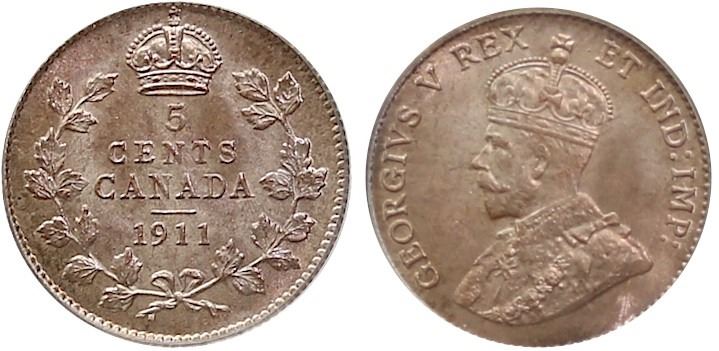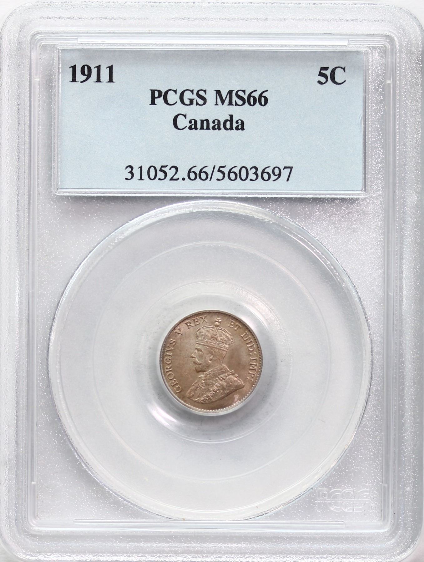 1911 5¢ PCGS Superb Gem Mint State-66. Superb gem issue displaying appealing golden tones.