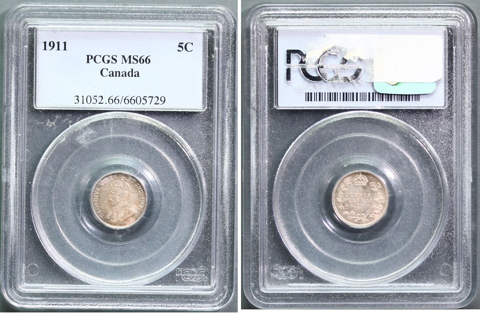 1911 5¢ PCGS Superb Gem Mint State-66. Superb gem issue displaying appealing soft obverse tones.