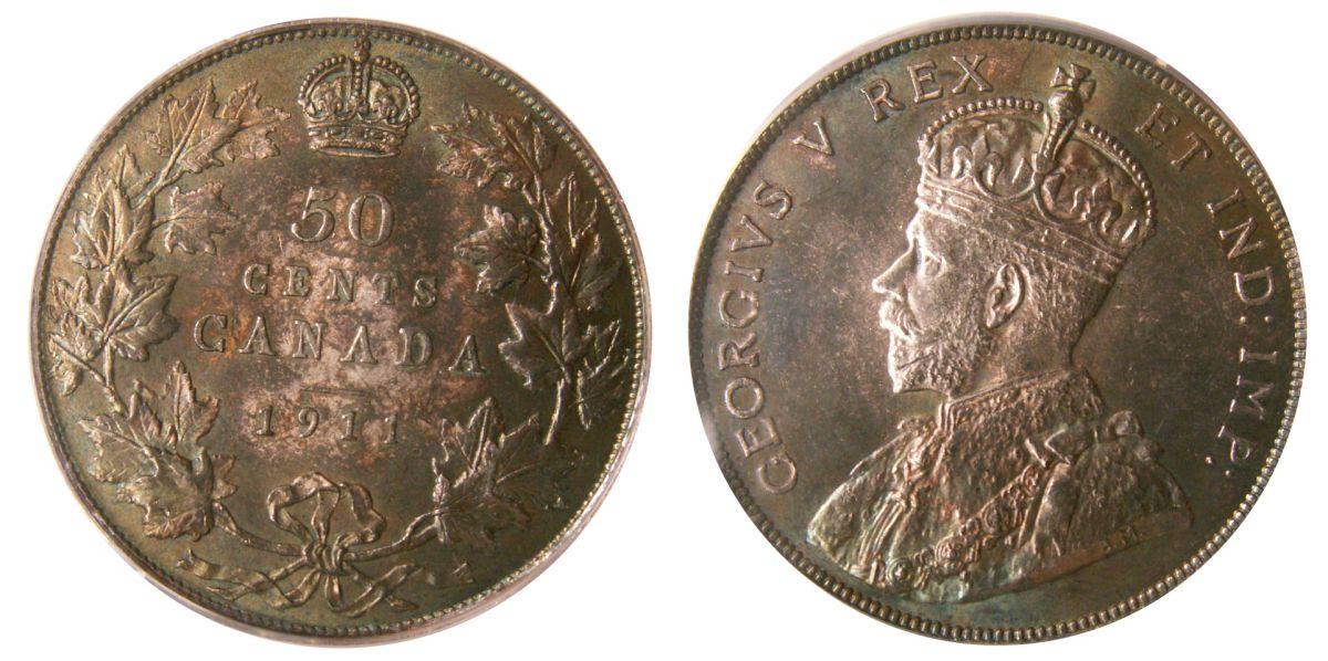 1911 50¢ CCCS MS64. Shades of blue and green. Well graded.