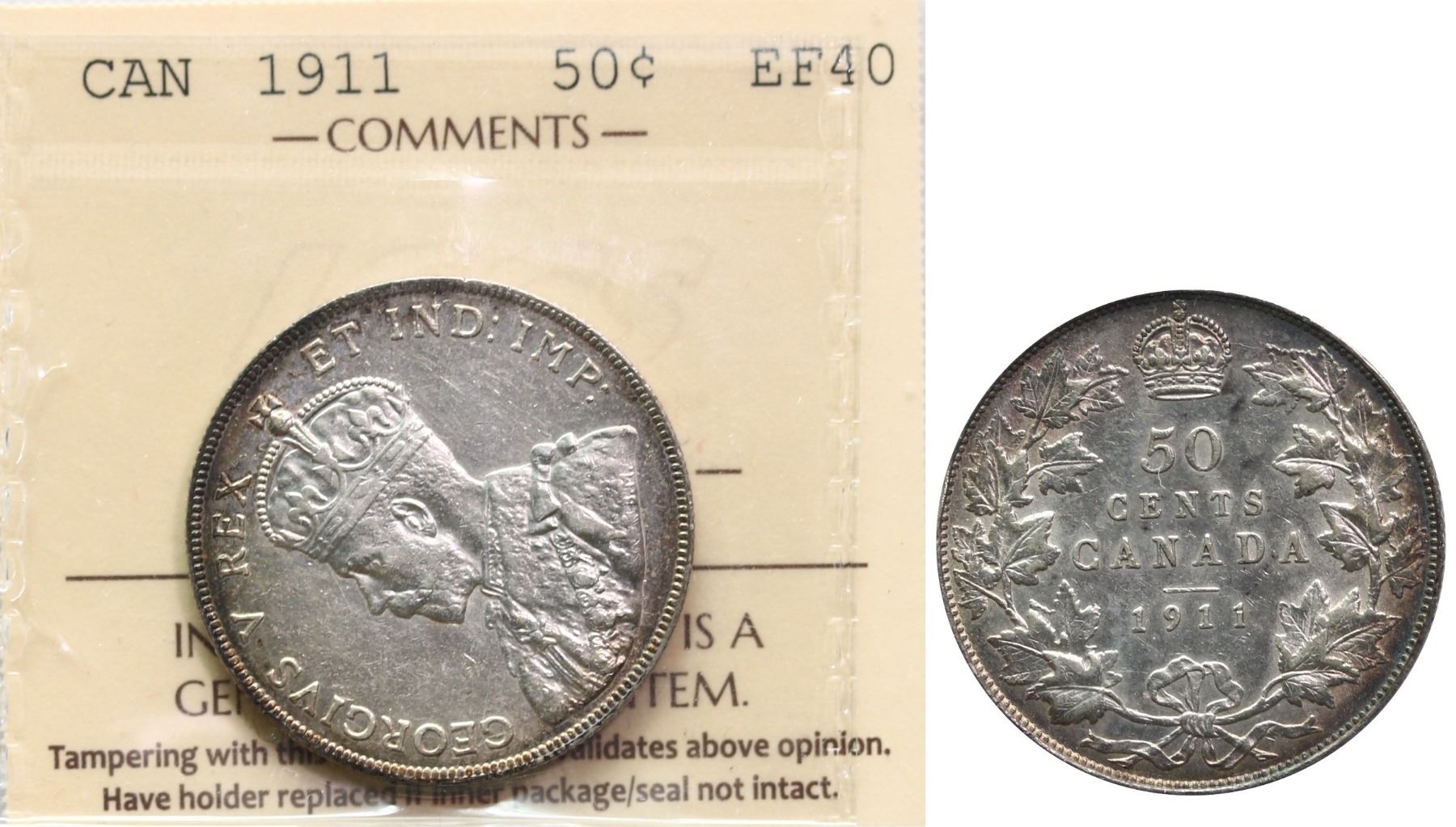 1911 50¢ ICCS Extra Fine-40 Brilliant and lustrous with deliacate tone.