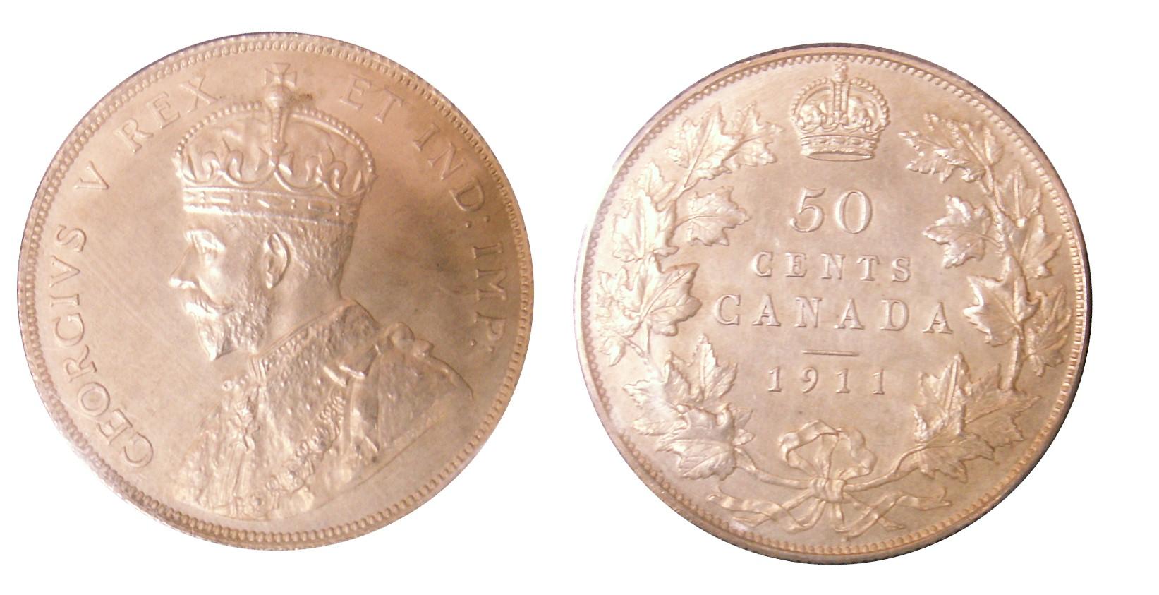 1911 50¢ ICCS SP-65 Fully struck. A white example with a touch of golden toning. Rare and seldom offered.