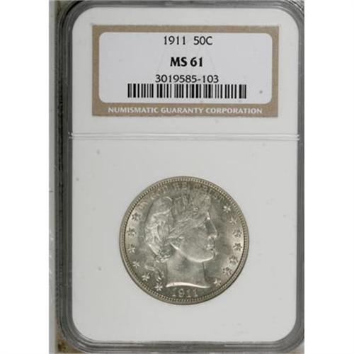 <B>1911 50C MS61 NGC.</B></I> NGC Census: (11/162). PCGS Population (8/215). Mintage: 1,406,543. Numismedia Wsl. Price for NGC/PCGS coin in MS61: $510. (#6521)<BR><BR><B>Coin Engraver:</B> Charles E. Barber<BR><BR><b>Shipping:</b> Coins & Currency (<a target="_blank" href="http://www.heritageauctions.com/common/shipping.php">view shipping information</a>)