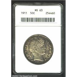 1911 50C MS63 ANACS. Densely speckled lavender-gray patina. A sharply struck example that has moderate luster and impressive surfaces.From the Ohio Collection. Important notice: We expect to be auctioning lots at the rate of 200-250 per hour. Sometimes eBay Premier live bid software cannot keep up with that pace, so we strongly recommend that you place a realistic proxy bid now as insurance to avoid disappointment. Also please note that all Heritage/CAA lots purchased through eBay Premier carry a 20% Buyer's Premium. Please make sure you read the Terms and Conditions.