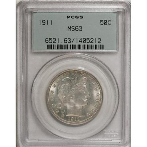 <B>1911 50C MS63 PCGS.</B></I> Delicate gold and silver-blue patina visits each side of this later Barber half. The reverse is clean, though the portrait shows small ticks that preclude a finer grade. Still, a pleasing example of this low-mintage Philadelphia issue.<BR><BR><B>Coin Engraver:</B> Charles E. Barber<BR><BR><b>Shipping:</b> Coins & Currency (<a target="_blank" href="http://www.heritageauctions.com/common/shipping.php">view shipping information</a>)