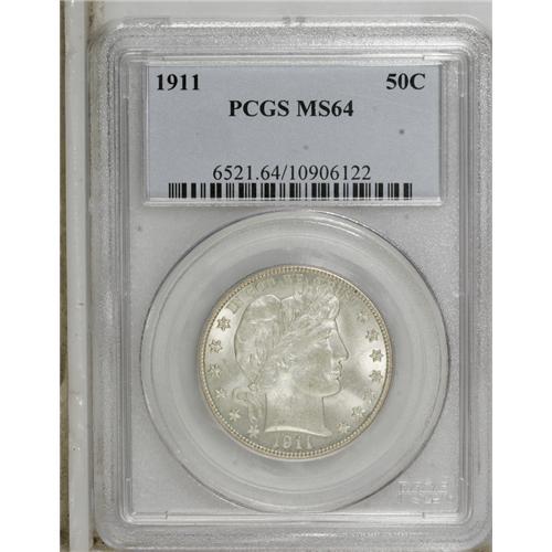 <B>1911 50C MS64 PCGS.</B></I> Light chestnut and ice-blue toning visits this shimmering and carefully preserved Barber quarter. A good strike with only a trace of incompleteness on the upper right shield corner.<BR><BR><b>Shipping:</b> Coins & Currency (<a target="_blank" href="http://www.heritageauctions.com/common/shipping.php">view shipping information</a>)
