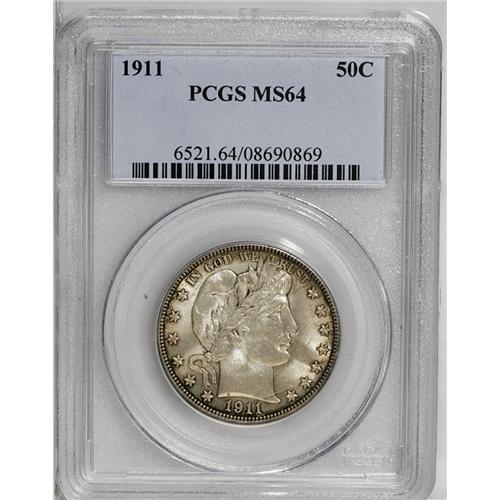 <B>1911<50C> MS64 PCGS.</B></I> Moderately lustrous with dove-gray and golden-brown colored surfaces that reveal no significant distractions or marks upon close inspection. A pleasing near-Gem type.
