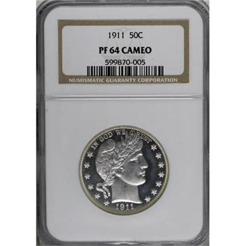 <B>1911 50C PR64 Cameo NGC.</B></I> The eye appeal of this example is fully equal to many Gem proof examples we have seen. Brilliant aside from a touch of gold toning along the rims. The fields are deeply mirrored with trivial hairlines preventing that elusive Gem determination. The devices are radiant with frost and just miss an Ultra Cameo. Census: 8 in 64 Cameo, 20 finer (8/07).<BR><I>From The Mario Eller Collection, Part One.</B></I><BR><BR><b>Shipping:</b> Coins & Currency (<a target="_blank" href="http://www.heritageauctions.com/common/shipping.php">view shipping information</a>)