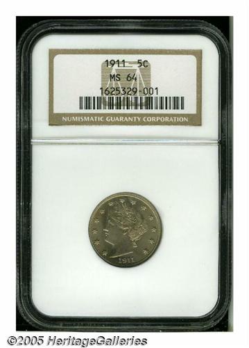 <B>1911<5C> MS64 NGC.</B></I> Well struck with bright, satiny mint luster. A lovely and affordable type coin.