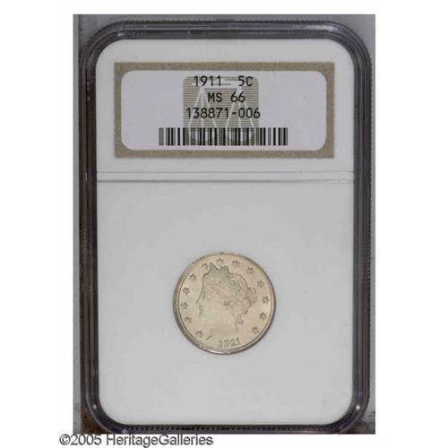 <B>1911<5C> MS66 NGC.</B></I> This golden tinted representative is fully frosted with nary a distracting blemish to report. The strike is typical for the series with some unevenness in detail on both sides. Census: 25 in 66, 1 finer (11/05).