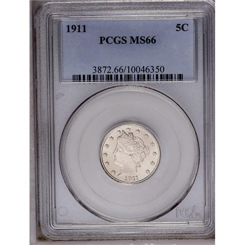 1911 5C MS66 PCGS. A brilliant, untoned appearance ado 1911[5C] MS66 PCGS.