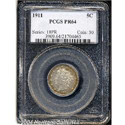 <B>1911<5C> PR64 PCGS.</B></I> Frosty devices offer a nice contrast with the fields on this sharply struck Liberty nickel. A narrow band of golden-brown patina around the rims frames nickel-gray centers. A couple of flecks are noted on the obverse, and a moderate-sized, light toning spot occurs on Liberty's neck. <BR><BR><B>Important notice:</B> Heritage usually auctions material at the rate of 200-250 lots per hour. On some occasions eBay Live bid software or the Internet may not be able to keep up with the pace of the auction. We recommend placing a realistic absentee bid now as insurance to avoid disappointment. Occasionally the auctioneer may eliminate or reject an eBay Live bid, and the auctioneer may also reopen a lot after the close of the eBay live bidding (usually because we missed an audience bid), and may reject your bid even if it shows you as the winning bidder. By bidding via eBay Live, you agree that Heritage may award the lot to another bidder at its sole discretion under the circumstances described above or any other reasonable circumstances. Since eBay bids are not shown to us until we open the lot on the floor, we treat those bids just like floor bids. In most cases the floor responds before the eBay bid is presented to us, due to Internet lag time, so for consistency we have made it a policy that floor bids are always considered first over tie eBay live bids. Also please note that all Heritage lots purchased through eBay Live carry a 20% Buyer's Premium. Please make sure you read the Terms and Conditions before you bid.