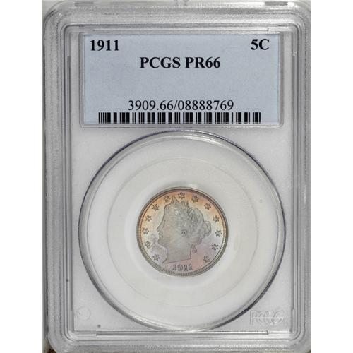 <B>1911<5C> PR66 PCGS.</B></I> Deeply reflective with excellent definition. The gray-blue devices rest upon yellow-green, orange, and blue-violet fields. Population: 43 in 66, 7 finer (8/06).<BR><I>From The Troy Wiseman Collection.</B></I>