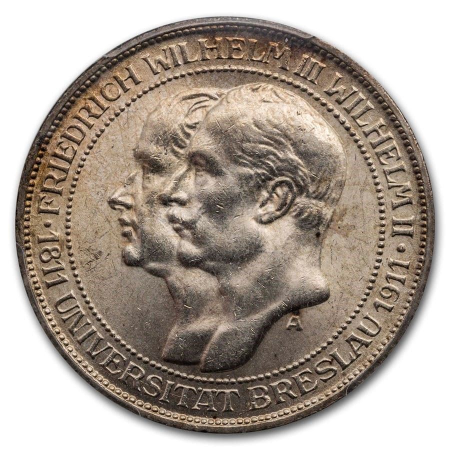 1911-A Germany 3 Mark Breslau University Prussia MS-63 PCGS