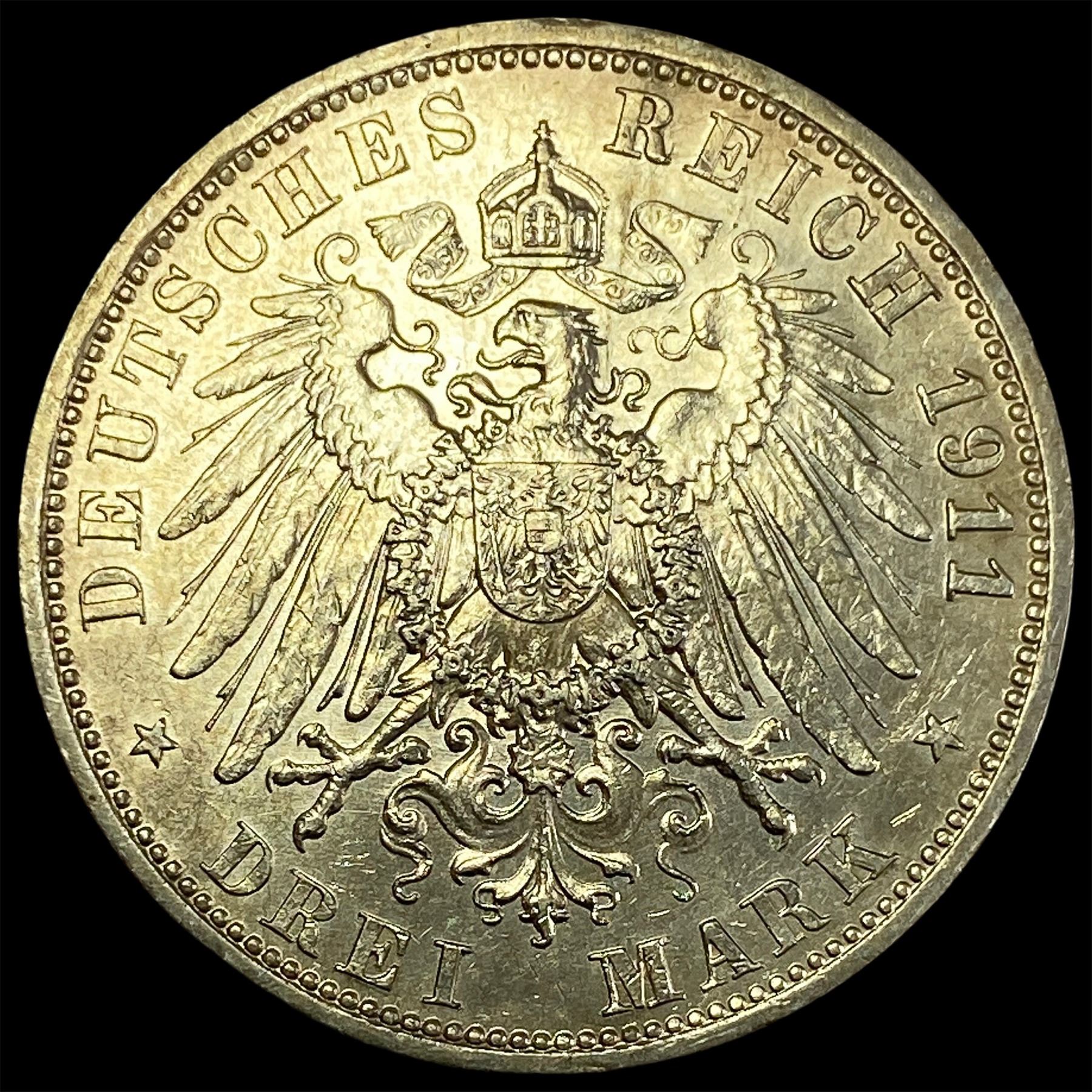 1911-A Germany Silver 3 Reichsmark CLOSELY UNCIRCULATED