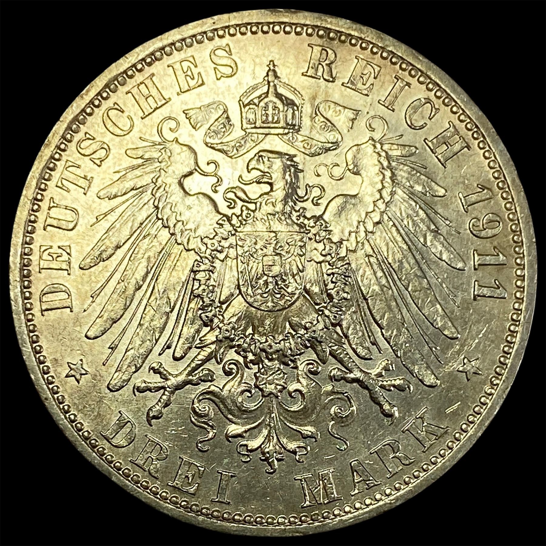 1911-A Germany Silver 3 Reichsmark CLOSELY UNCIRCULATED
