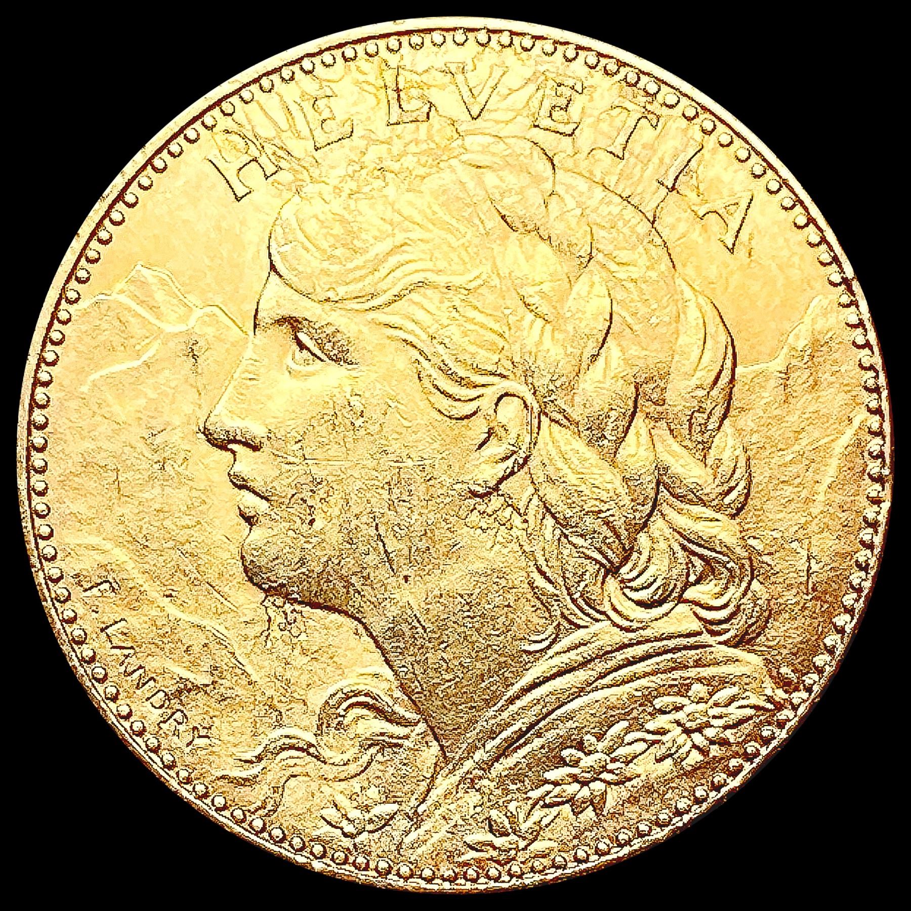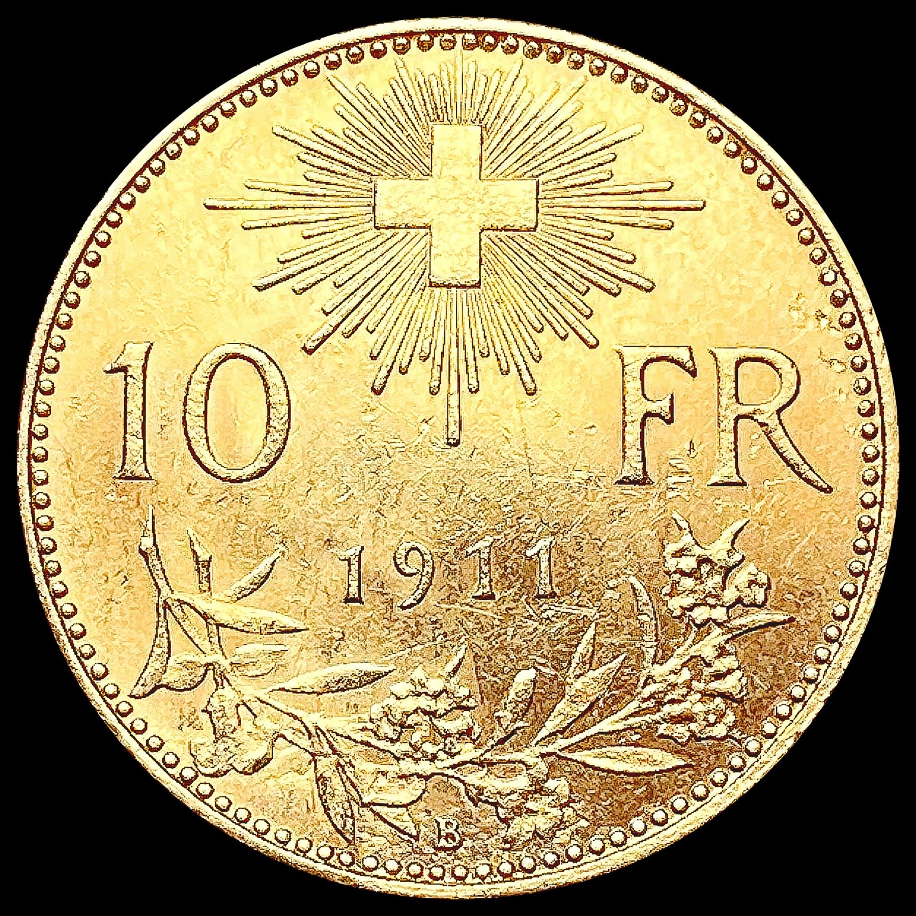 1911-B Switzerland .0933oz Gold 10 Francs CHOICE B