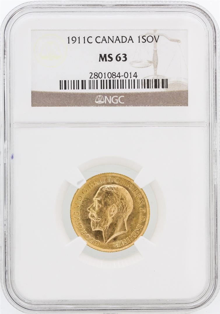 One 1911-C NGC MS63 Canada 1SOV Gold Coin. NGC Certified.