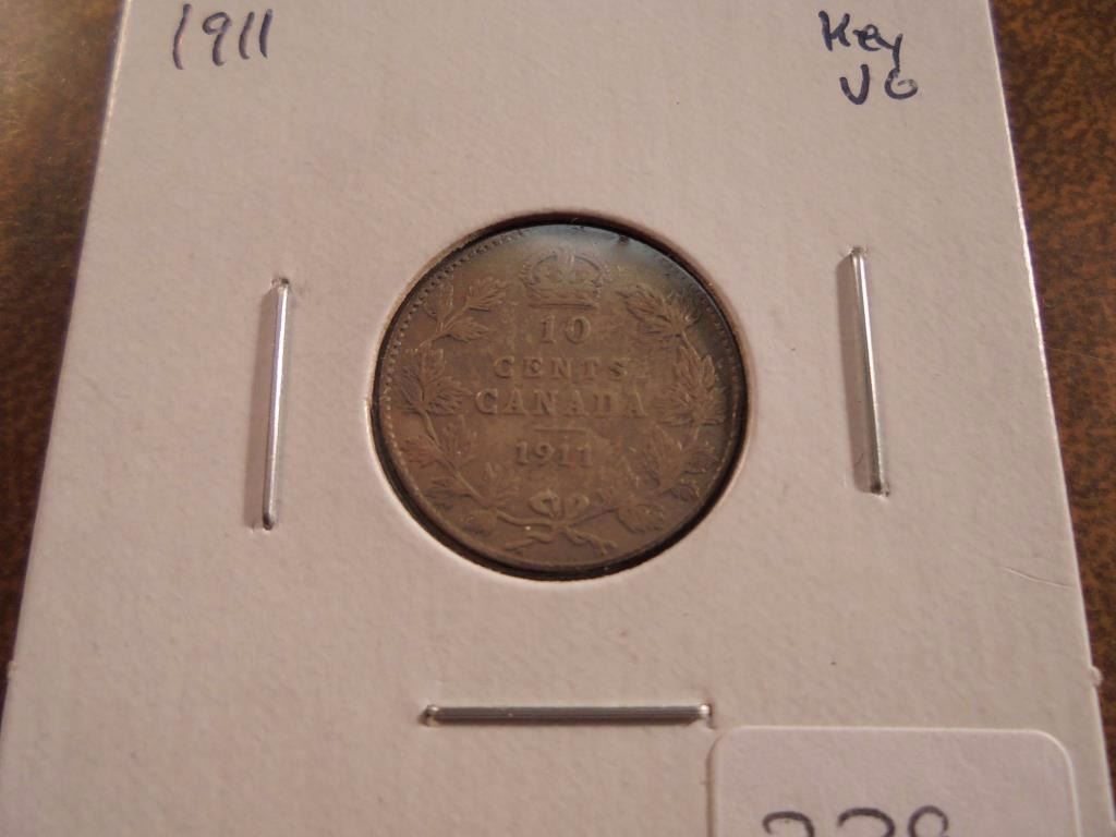 1911 CANADA SILVER 10 CENT KEY DATE VERY GOOD