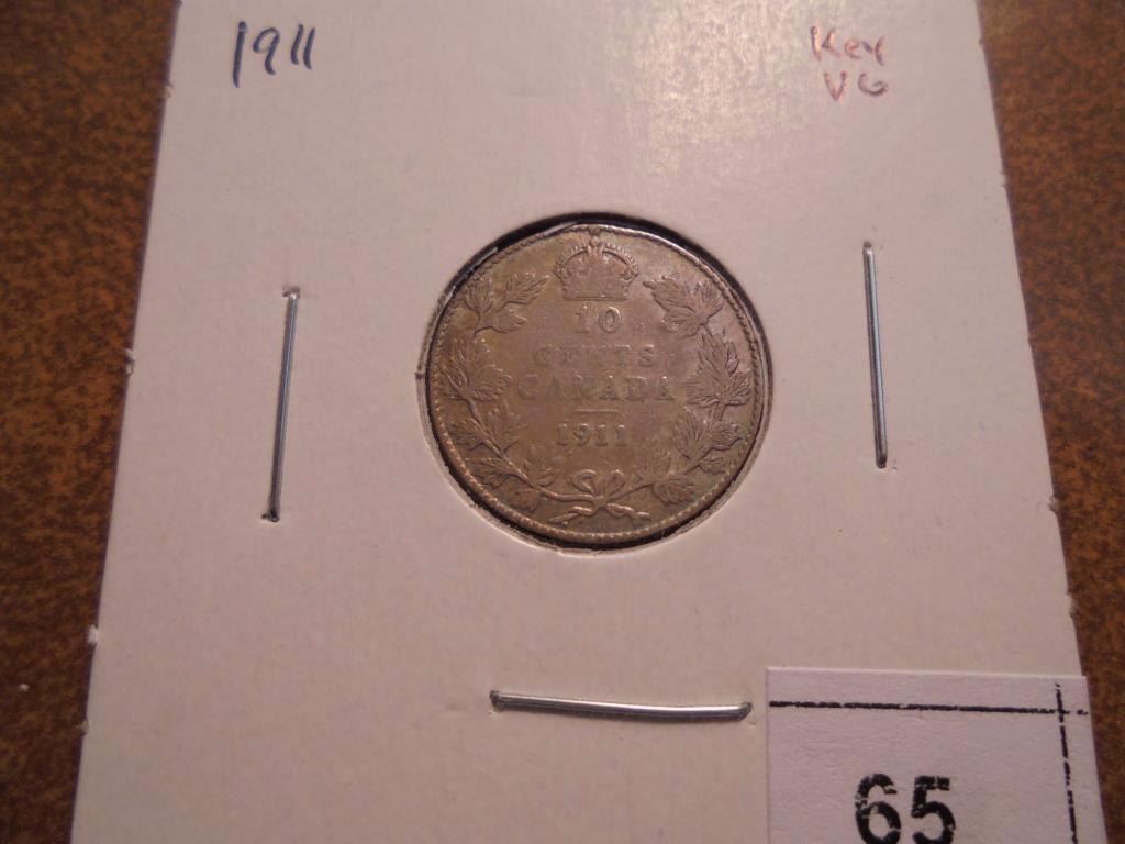 1911 CANADA SILVER 10 CENTS KEY DATE VERY GOOD
