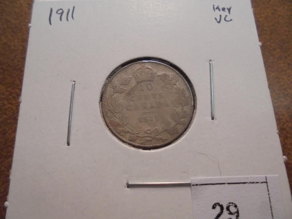 1911 CANADA SILVER 10 CENTS VERY GOOD