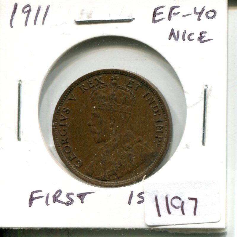 1911 Canadian Large Cent. The first Large Cent for King George V. EF-40. Nice.