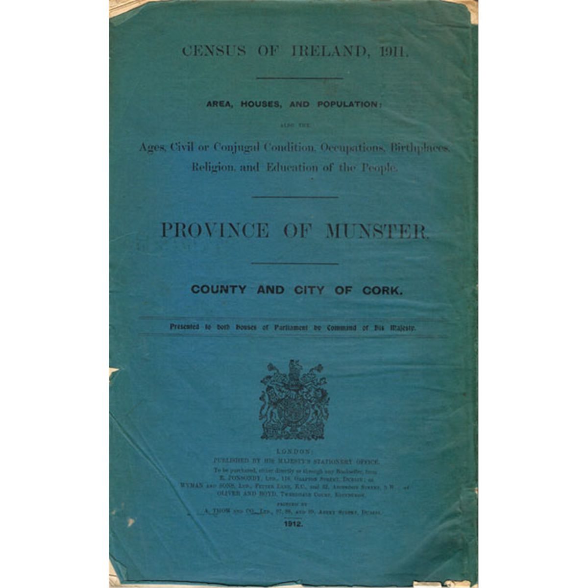 Compiled statistics relating to Cork published by His Majesty's Stationery Office. Includes information on houses, population, ages, birthplaces, religion, education etc.