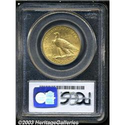 1911-D $10 MS62 PCGS. One of the overall and condition rarities in the Indian Head Eagle series, from a tiny production of just 30,100 pieces. Although not as widely recognized as its Quarter Eagle counterpart, the '11-D Ten is actually much scarcer at the Mint State level. This is a lustrous, reddish-tinged example that has a typical granular texture to the surfaces. Modest contact marks are most prevalent on the obverse and are the primarily grade-limiting feature. Population: 31 in 62, 28 finer (10/03). Important notice: Heritage usually auctions material at the rate of 200-250 lots per hour. On some occasions eBay Live bid software or the Internet may not be able to keep up with the pace of the auction. We recommend placing a realistic absentee bid now as insurance to avoid disappointment. Occasionally the auctioneer may eliminate or reject an eBay Live bid, and the auctioneer may also reopen a lot after the close of the eBay live bidding (usually because we missed an audience bid), and may reject your bid even if it shows you as the winning bidder. By bidding via eBay Live, you agree that Heritage may award the lot to another bidder at its sole discretion under the circumstances described above or any other reasonable circumstances. Also please note that all Heritage lots purchased through eBay Live carry a 20% Buyer's Premium. Please make sure you read the Terms and Conditions before you bid.