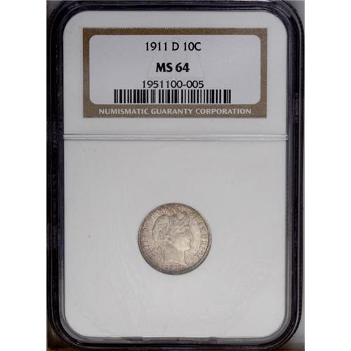 <B>1911-D<10C> MS64 NGC.</B></I> The dappled autumn-brown surfaces are lustrous and display only minor contact. The strike is sharp, with a hint of softness only present on the right ribbon loop.