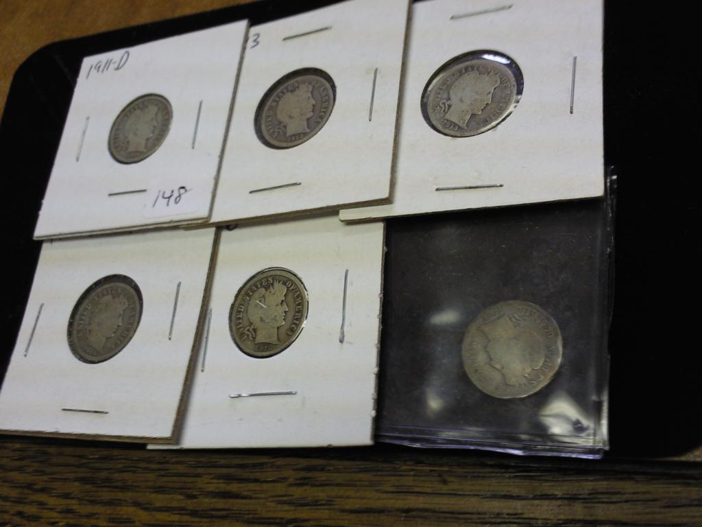 1911-D, 13, 13, 14-D, 16 & 16-S BARBER DIMES