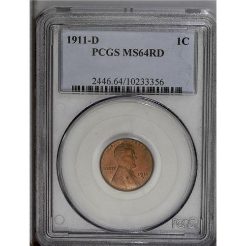 <B>1911-D<1C> MS64 Red PCGS.</B></I> This sharply struck coin offers deep cherry-red color. The grade is limited by a few scattered specks of carbon.<BR><I>From The Tigard Oregon Small Cent Collection.</B></I>