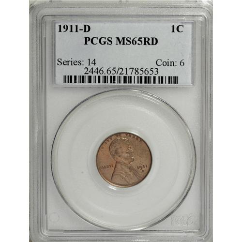 <B>1911-D 1C MS65 Red PCGS.</B></I> Both sides of this Gem are sharply struck with nearly complete design details, save for slight weakness of a few letters at the top of the reverse. Satiny surfaces exhibit subdued red mint luster.<BR><BR><b>Shipping:</b> Coin/Currency (<a target="_blank" href="http://www.heritageauctions.com/common/shipping.php">view shipping information</a>)