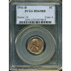 <B>1911-D 1C MS65 Red PCGS.</B></I> Coppery surfaces reveal touches of rose and pink, and exhibit sharply defined motifs. A small fleck is noted at the top right of the Y in LIBERTY. Lot:5396