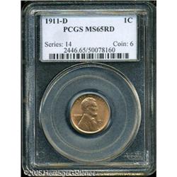 <B>1911-D 1C MS65 Red PCGS.</B></I> Fully struck with even, original orange-red mint luster. An impressive and essentially problem-free example of this scarce early issue. Lot:5397