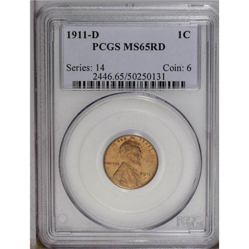 <B>1911-D<1C> MS65 Red PCGS.</B></I> Minor striking weakness may be forgiven as almost universal, for the issue, and a shallow planchet depression is evident beneath the E in CENT. The bright, lustrous surfaces exhibit full Red color and are devoid of post-striking marks.