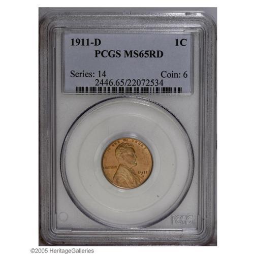 <B>1911-D<1C> MS65 Red PCGS.</B></I> Well struck on the design features, except for weakness on the E of UNITED, which is typical for this issue. Coppery-gold patina overlays lustrous surfaces that are devoid of mentionable contact marks. Population: 120 in 65, 15 finer (10/05).