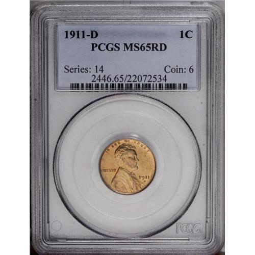 <B>1911-D<1C> MS65 Red PCGS.</B></I> Well struck on the design features, except for weakness on the E of UNITED, which is typical for this issue. Coppery-gold patina overlays lustrous surfaces that are devoid of mentionable contact marks. A pair of small planchet flaws (as struck) on the reverse (located below the E in CENT and between AM of AMERICA, respectively) should not be mistaken for abrasions. Population: 127 in 65 Red, 16 finer (1/06).