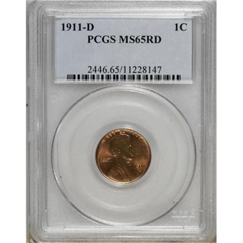 <B>1911-D 1C MS65 Red PCGS.</B></I> Soft copper-orange and pumpkin shadings permeate the surfaces of this first-year Denver cent. Well struck and carefully preserved with minimal carbon. PCGS has graded just 18 finer Red pieces (2/08).<BR><BR><B>Coin Engraver:</B> Victor D. Brenner<BR><BR><b>Shipping:</b> Coins & Currency (<a target="_blank" href="http://www.heritageauctions.com/common/shipping.php">view shipping information</a>)