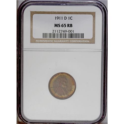 <B>1911-D<1C> MS65 Red and Brown NGC.</B></I> "Red and Brown" actually translates to lush concentric rings of lemon-yellow, magenta, and indigo, with a bold strike and a dearth of mentionable abrasions.<BR><I>From The Tigard Oregon Small Cent Collection.</B></I>