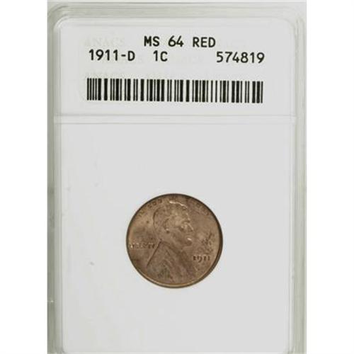 <B>1911-D 1C MS64 Red ANACS.</B></I> . NGC Census: (82/29). PCGS Population (231/142). Mintage: 12,672,000. Numismedia Wsl. Price for NGC/PCGS coin in MS64: $520. (#2446)<BR><BR><B>Coin Engraver:</B> Victor D. Brenner<BR><BR><b>Shipping:</b> Coins & Currency (<a target="_blank" href="http://www.heritageauctions.com/common/shipping.php">view shipping information</a>)