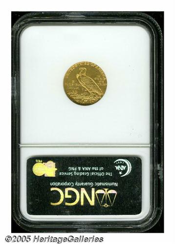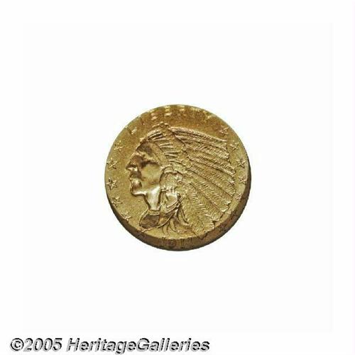 <B>1911-D<$2 1/2> AU58 NGC.</B></I> Brilliant and attractive, with virtually all of the original mint luster still visible. The 1911-D has long been celebrated as the key issue of the Indian Head quarter eagle series. Only 55,680 examples of the 1911-D were produced, by far the lowest production figure of the design type.