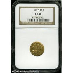 1911-D $2 1/2 AU58 NGC. The mintmark is sharp, and 1911-D $2 1/2 AU58 NGC.