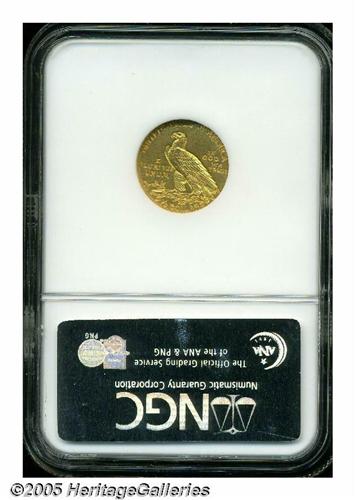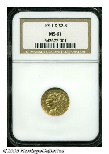 <B>1911-D<$2 1/2> MS61 NGC.</B></I> Light yellow-gold with satiny surfaces and bold design details. The present sale provides collectors with a choice when seeking out this rare date. Like most others offered herein, this example has a bold mintmark.