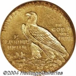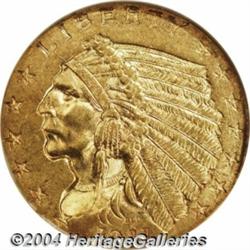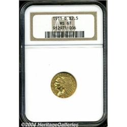 <B>1911-D<$2 1/2> MS61 NGC.</B></I> Smooth reddish-golden surfaces are satiny in texture and have a well defined, although not quite bold mintmark. The undisputed key to the Indian Quarter Eagle series and a coin that seems to enjoy perpetual demand. <BR><BR><B>Important notice:</B> Heritage usually auctions material at the rate of 200-250 lots per hour. On some occasions eBay Live bid software or the Internet may not be able to keep up with the pace of the auction. We recommend placing a realistic absentee bid now as insurance to avoid disappointment. Occasionally the auctioneer may eliminate or reject an eBay Live bid, and the auctioneer may also reopen a lot after the close of the eBay live bidding (usually because we missed an audience bid), and may reject your bid even if it shows you as the winning bidder. By bidding via eBay Live, you agree that Heritage may award the lot to another bidder at its sole discretion under the circumstances described above or any other reasonable circumstances. Since eBay bids are not shown to us until we open the lot on the floor, we treat those bids just like floor bids. In most cases the floor responds before the eBay bid is presented to us, due to Internet lag time, so for consistency we have made it a policy that floor bids are always considered first over tie eBay live bids. Also please note that all Heritage lots purchased through eBay Live carry a 20% Buyer's Premium. Please make sure you read the Terms and Conditions before you bid. </span></font></tr></table></td></tr></table>
