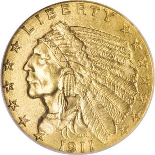 <B>1911-D $2 1/2 MS61 NGC.</B></I> The Denver mintmark is bold on this satiny and expertly struck key date quarter eagle. For the MS61 grade, the fields and devices are surprisingly void of marks, and the eye appeal is imposing. The Indian quarter eagle series is collectible, which focuses demand on low mintage issues such as the 1911-D and the 1914.<BR><BR><B>Coin Engraver:</B> Bela Lyon Pratt<BR><BR><b>Shipping:</b> Coins & Currency (<a target="_blank" href="http://www.heritageauctions.com/common/shipping.php">view shipping information</a>)