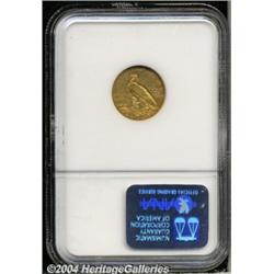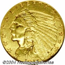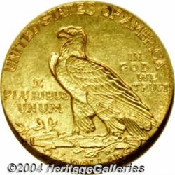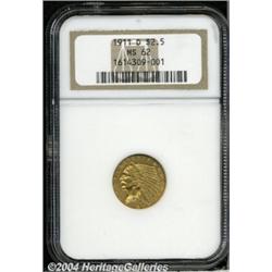 <B>1911-D<$2 1/2> MS62 NGC.</B></I> This sharply struck Quarter Eagle has rich golden-brown color and is surprisingly unabraded. A solitary, wispy mark below the second S in STATES is the only blemish, and it is not apparent to the unaided eye. The mintmark is bold, unlike that found on many survivors. The 1911-D is the unchallenged key date of this popular gold series, and its mintage is only a small fraction of the second scarcest issue, the 1914. <BR><BR><B>Important notice:</B> Heritage usually auctions material at the rate of 200-250 lots per hour. On some occasions eBay Live bid software or the Internet may not be able to keep up with the pace of the auction. We recommend placing a realistic absentee bid now as insurance to avoid disappointment. Occasionally the auctioneer may eliminate or reject an eBay Live bid, and the auctioneer may also reopen a lot after the close of the eBay live bidding (usually because we missed an audience bid), and may reject your bid even if it shows you as the winning bidder. By bidding via eBay Live, you agree that Heritage may award the lot to another bidder at its sole discretion under the circumstances described above or any other reasonable circumstances. Since eBay bids are not shown to us until we open the lot on the floor, we treat those bids just like floor bids. In most cases the floor responds before the eBay bid is presented to us, due to Internet lag time, so for consistency we have made it a policy that floor bids are always considered first over tie eBay live bids. Also please note that all Heritage lots purchased through eBay Live carry a 20% Buyer's Premium. Please make sure you read the Terms and Conditions before you bid. </span></font></tr></table></td></tr></table>