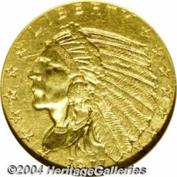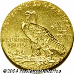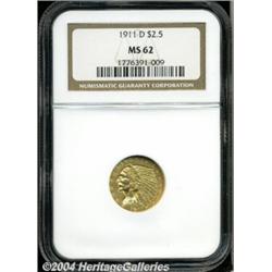 <B>1911-D<$2 1/2> MS62 NGC.</B></I> Some examples of this important 20th century gold issue are so poorly impressed that the all-important D mintmark is not discernible. The present example, on the other hand, is boldly detailed throughout with a readily evident mintmark. Both sides are mostly honey-gold in appearance, although select angles reveal delicate golden-rose overtones here and there. There are few abrasions of any size--an uncommon feature for an Indian Quarter Eagle at the BU level--and certainly none that are worthy of special consideration. The 1911-D boasts the lowest mintage (55,680 pieces) in this series, and it is the undisputed key.<BR><I>From The Sarasota Collection.</B></I> <BR><BR><B>Important notice:</B> Heritage usually auctions material at the rate of 200-250 lots per hour. On some occasions eBay Live bid software or the Internet may not be able to keep up with the pace of the auction. We recommend placing a realistic absentee bid now as insurance to avoid disappointment. Occasionally the auctioneer may eliminate or reject an eBay Live bid, and the auctioneer may also reopen a lot after the close of the eBay live bidding (usually because we missed an audience bid), and may reject your bid even if it shows you as the winning bidder. By bidding via eBay Live, you agree that Heritage may award the lot to another bidder at its sole discretion under the circumstances described above or any other reasonable circumstances. Since eBay bids are not shown to us until we open the lot on the floor, we treat those bids just like floor bids. In most cases the floor responds before the eBay bid is presented to us, due to Internet lag time, so for consistency we have made it a policy that floor bids are always considered first over tie eBay live bids. Also please note that all Heritage lots purchased through eBay Live carry a 20% Buyer's Premium. Please make sure you read the Terms and Conditions before you bid. </span></font></tr></table></td></tr></table>