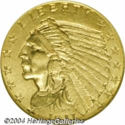 <B>1911-D<$2 1/2> MS62 NGC.</B></I> Generally well detailed surfaces are a bright reddish-gold color and are quite smooth except for a faint hairline scratch behind the eagle on the reverse. The mintmark is halfway between weak and strong on this important, low mintage Indian. <BR><BR><B>Important notice:</B> Heritage usually auctions material at the rate of 200-250 lots per hour. On some occasions eBay Live bid software or the Internet may not be able to keep up with the pace of the auction. We recommend placing a realistic absentee bid now as insurance to avoid disappointment. Occasionally the auctioneer may eliminate or reject an eBay Live bid, and the auctioneer may also reopen a lot after the close of the eBay live bidding (usually because we missed an audience bid), and may reject your bid even if it shows you as the winning bidder. By bidding via eBay Live, you agree that Heritage may award the lot to another bidder at its sole discretion under the circumstances described above or any other reasonable circumstances. Since eBay bids are not shown to us until we open the lot on the floor, we treat those bids just like floor bids. In most cases the floor responds before the eBay bid is presented to us, due to Internet lag time, so for consistency we have made it a policy that floor bids are always considered first over tie eBay live bids. Also please note that all Heritage lots purchased through eBay Live carry a 20% Buyer's Premium. Please make sure you read the Terms and Conditions before you bid. </span></font></tr></table></td></tr></table>