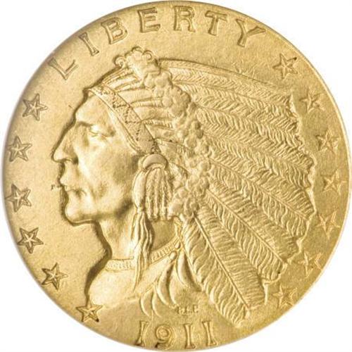 <B>1911-D $2 1/2 MS62 NGC.</B></I> A back-handed compliment to the rarity and popularity of the 1911-D quarter eagle is to note how many altered and counterfeit examples exist of this issue. At least two different die struck counterfeit issues are known, in addition to many P-mints with added mintmarks. The diagnostics of genuine '11-D quarter eagles are widely known, and today with third-party encapsulation fears of purchasing a non-authentic piece are virtually nil. <BR> This is a well struck coin that has even reddish patina over each side. The mintmark is sharp, and the only marks worthy of mention are a pair of vertical abrasions on the reverse on each side of the eagle's head. Lovely, satiny mint luster.<BR><BR><B>Coin Engraver:</B> Bela Lyon Pratt<BR><BR><b>Shipping:</b> Coins & Currency (<a target="_blank" href="http://www.heritageauctions.com/common/shipping.php">view shipping information</a>)