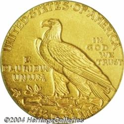 <table><tr><td><table><tr><td>1911-D $2 1/2 MS62 PCGS. With an original mintage of a mere 55,680 pieces, the 1911-D is far and away the scarcest Indian quarter eagle. As the majority of extant representatives display varying degrees of wear, this issue is also a well respected condition rarity. A strict Brilliant Uncirculated coin, the surfaces display above average striking detail that includes a strong mintmark. There are minimal abrasions, but the luster is slightly subdued, limiting the grade. <BR><BR><B>Important notice:</B> Heritage usually auctions material at the rate of 200-250 lots per hour. On some occasions eBay Live bid software or the Internet may not be able to keep up with the pace of the auction. We recommend placing a realistic absentee bid now as insurance to avoid disappointment. Occasionally the auctioneer may eliminate or reject an eBay Live bid, and the auctioneer may also reopen a lot after the close of the eBay live bidding (usually because we missed an audience bid), and may reject your bid even if it shows you as the winning bidder. By bidding via eBay Live, you agree that Heritage may award the lot to another bidder at its sole discretion under the circumstances described above or any other reasonable circumstances. Since eBay bids are not shown to us until we open the lot on the floor, we treat those bids just like floor bids. In most cases the floor responds before the eBay bid is presented to us, due to Internet lag time, so for consistency we have made it a policy that floor bids are always considered first over tie eBay live bids. Also please note that all Heritage lots purchased through eBay Live carry a 20% Buyer's Premium. Please make sure you read the Terms and Conditions before you bid. <BR><BR><B>IMPORTANT ANNOUNCEMENT ABOUT RESERVES:</B> Heritage now divulges all reserves on its web site 7 days before every auction. If you want to know whether the reserve on this lot has been met, and if not, what the reserve amount is, please visit this lot page on the HeritageCoin.com web site, or email: bid@HeritageGalleries.com </span></font></td></tr></table></td></tr></table>